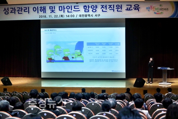대전 서구(구청장 장종태)는 22일 구청 대강당에서 성과관리 전 직원 교육을 실시하고, 본격적인 ‘2019년 BSC 성과지표‘ 고도화에 돌입했다.