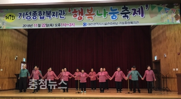대전시설관리공단(이사장 설동승) 기성종합복지관이 주관한 ‘제7회 행복나눔 축제’가 22일 기성종합복지관 3층 다목적체육관에서 복지관 사회교육프로그램 수강생 및 지역 주민 400여명이 참석한 가운데 성황리에 개최됐다.
