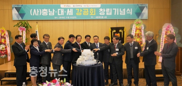 충남 지역 강소기업인 모임인 강공회가 22일 세종웨딩홀에서 대전, 세종 기업들을 포함해 ‘사단법인 충남∙대전∙세종 강공회’ 창립기념식을 개최했다.