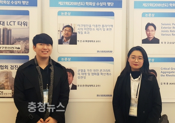 한편, 박선규 교수 연구팀의 김선아 석사과정 학생은 한국건축시공학회 2018 춘계 학술발표대회에서 ‘아크방전에 의해 표면개질 된 고로슬래그를 사용한 시멘트 경화체의 수화 특성’을 주제로 우수학술상을,
