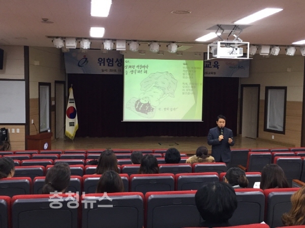 충남도교육청(교육감 김지철)은 26일부터 다음달 4일까지 영양교사, 영양사를 대상으로 학교급식소 위험성평가와 유해요인조사 순회교육을 실시한다.