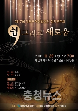 대덕구여성합창단은‘쉼 그리고 새로움’을 주제로 깊어가는 가을에 어울리는 맑고 감미로운 선율로 분주한 도시 일상에 쉼표를 선사할 예정이다.