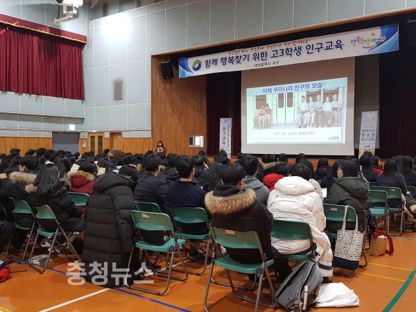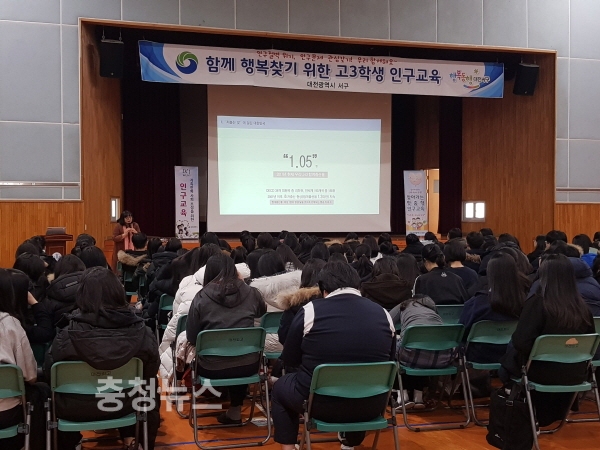 대전 서구(구청장 장종태)는 26일 수능을 마친 대전외국어고등학교 3학년 학생을 대상으로 학교 순회 인구교육을 했다.