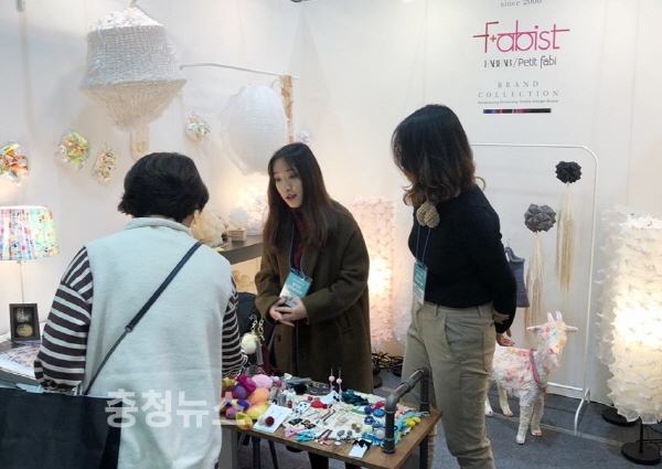 상명대학교(총장 백웅기) 텍스타일디자인학과와 산업디자인학과로 구성된 '창조경제를 선도하는 융합형 창의디자인 인재양성 특성화사업단(단장 강성해 교수, 이하 창의디자인사업단)의 창업동아리가 22일부터 25일 까지 서울 코엑스에서 열린 ‘2018 공예 트렌드 페어’에 참가했다.