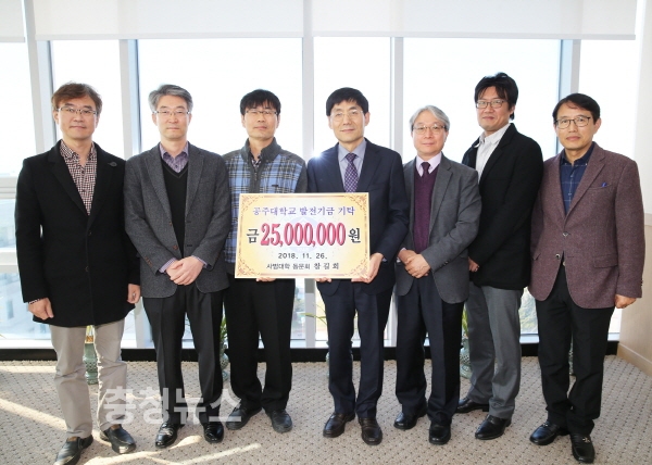 발전기금 기탁식은 26일 대학본부 6층 총장접견실에서 박달원 총장직무대리를 비롯한 이일규 대외협력본부장과 장학회 설립자인 박영철 공주대 명예교수, 회원인 조준기 죽산고 교장, 김맹기 대기과학과 교수, 조성기 음악교육과 교수 등 관계자가 참석한 가운데 열렸다.