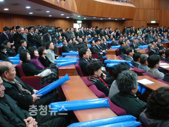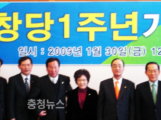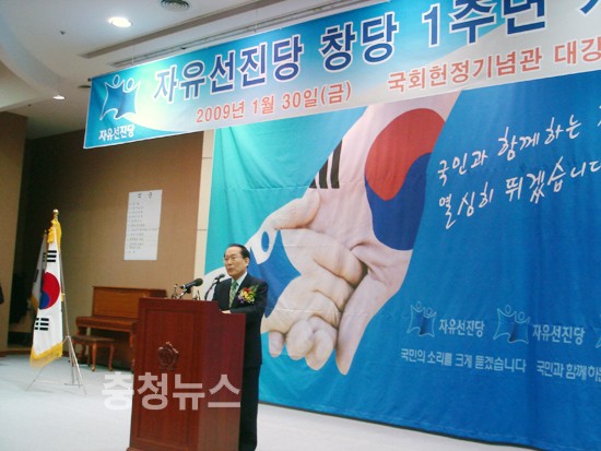 존경하는 국민 여러분, 당원동지 여러분. 이회창 총재님과 당직자 여러분. 그리고 우리 당 소속 의원 여러분, 우리 모두 함께 자유선진당 창당 1주년 을 축하하자.