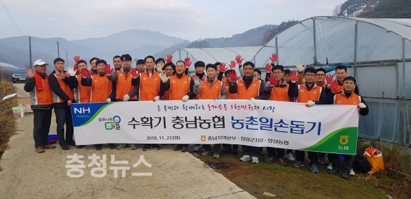 이번 농촌일손돕기에는 충남농협 조소행 본부장을 비롯하여 류병관 농협노조 충남세종지역위원장과 중앙회, 경제지주, 은행, 보험, 농신보, 자산관리 임직원 및 청양군지부(지부장 윤일근), 화성농협(조합장 김종욱) 직원 등 50여명이 참여하여 구기자 수확에 구슬땀을 흘렸다.