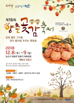 ‘곶감의 고장’ 논산시 양촌면 감 덕장에서 주홍빛 곶감이 달콤하게 익어가는 계절, 제16회 양촌곶감축제가 다음달 8일부터 9일까지 이틀간 양촌리 체육공원에서 열린다.