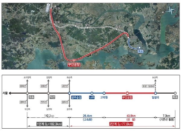고막원∼임성리 구간(43.9km)은 총 7개 공구로 나뉘어 새롭게 건설되며, 나주 고막원역에서 신설 무안공항역을 거쳐 목포 임성리역을 연결하게 된다.