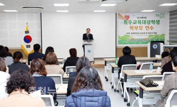 대전시교육청(교육감 설동호)은 27일 대전특수교육지원센터에서 관내 학부모 80여명이 참석한 가운데 ‘2018학년도 특수교육대상학생 학부모 연수’를 개최했다.