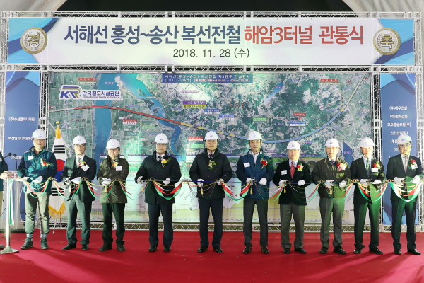 충청남도 홍성군과 경기도 화성시 송산동을 연결하는 서해선 복선전철 건설사업 18개 터널 가운데 가장 긴 해암3터널(4.748km)을 관통하고 28일 기념행사 개최