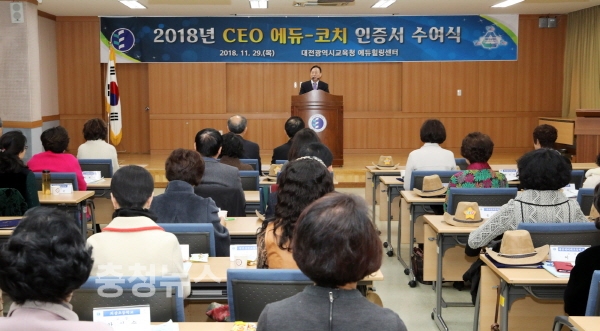 대전시교육청(교육감 설동호)은 29일, 에듀힐링센터에서 에듀-코칭 CEO 전문가과정 수료식 및 에듀-코치 인증서 수여식을 가졌다.