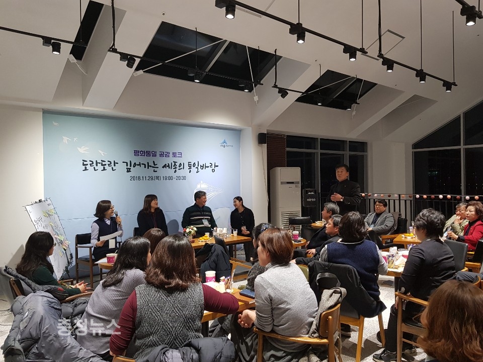 세종시(시장 이춘희)가 지속가능한 남북관계 발전의 기틀을 마련하고 평화통일 공감대를 조성하기 위해 지난 29일 세종호수공원 내 복합문화휴게시설인 ‘송담만리’에서 토크콘서트를 개최했다고 30일 밝혔다.