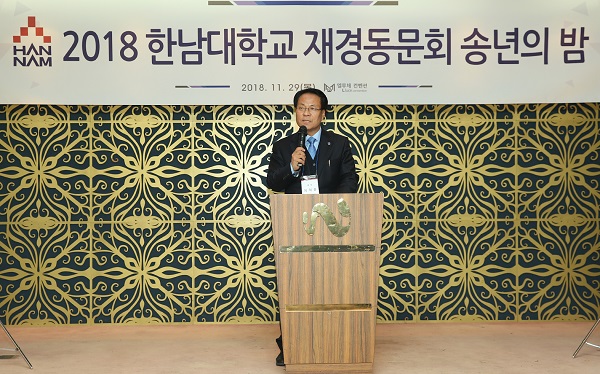 한남대 재경동문회(회장 김영태·현대백화점 상근고문)는 29일 오후 7시 서울 강남구 엘루체컨벤션에서 2018년도 정기총회 및 송년회를 개최했다.