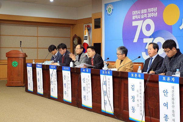 대전시는 30일 오후 시청 대회의실에서 박영순 대전시 정무부시장과 전문가, 지역주민 100여 명이 참석한 가운데 '전통을 잇고 미래를 연다'를 주제로 시민심포지엄을 개최했다.
