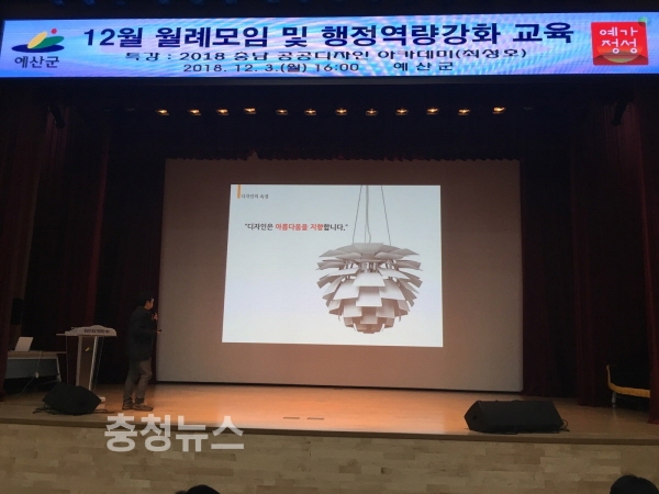충남 예산군이 지난 3일 군청 추사홀에서 직원 300여 명을 대상으로 12월 월례모임 및 행정역량강화 교육을 실시했다.