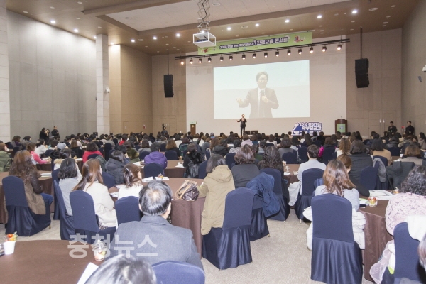 1부 특강에서는 한양대 정재찬 교수가 ‘시로 꿈꾸는 우리 교육의 미래’라는 주제로 자녀·부모·학교 모두가 행복한 삶을 설계하기 위한 진로방향을 제시해주며 생명을 가꾸는 진로교육의 중요성을 안내했다.