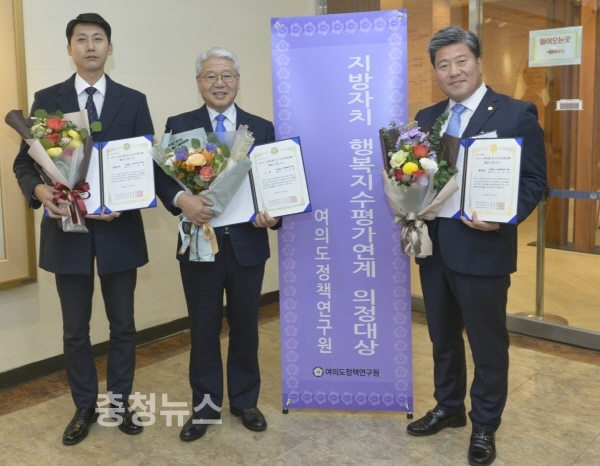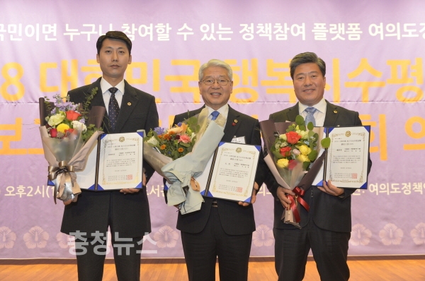 이번 시상식은 지방자치단체 행복지수평가 연구 보고 비영리 민간단체인 여의도정책연구원이 주관하는 행사다. 행복지수 산정 자료와 지방자치의회 의원들의 조례 입안 및 지역 정책 기여도 등을 종합적으로 판단해 의정대상 수상자를 선정한다.