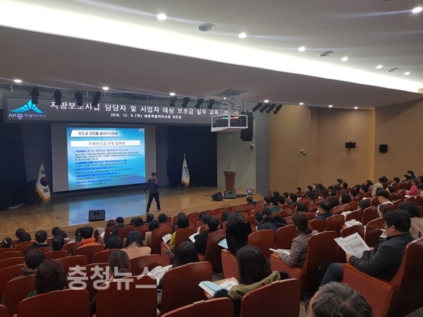 세종시(시장 이춘희)가 6일 오후 세종시청 여민실에서 지방보조사업 담당자와 사업자를 대상으로 ‘지방보조금 집행 및 회계처리 실무교육’을 실시했다.