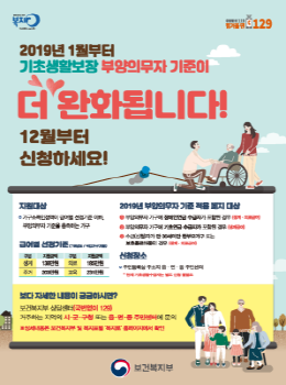 2019년 1월 시행되는 부양의무자 기준 완화로 보다 많은 취약계층의 군민이 기초생계급여와 기초의료급여의 혜택을 볼 것으로 예상된다.