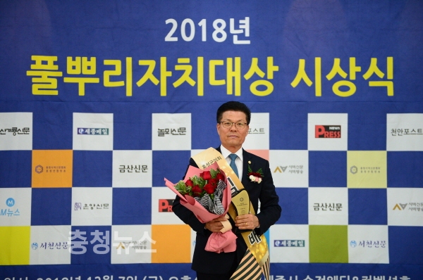 한편, 풀뿌리 지방자치대상은 충남지역신문협회가 매년 충남도와 15개 시·군 시장·군수와 지방의원 등을 대상으로 자치시대 지역발전과 지역민의 삶의 질 향상에 기여한 인물을 발굴해 시상하는 상이며, 이번 2018년 풀뿌리 자치대상 “의정부문”에서 10명이 수상했다.
