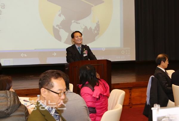 한남대 이덕훈 총장이 11일 ‘학부모초청 간담회‘에서 인사말을 하고 있다.