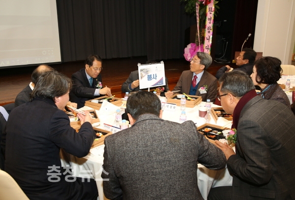 11일 한남대 ‘학부모초청 간담회’에서 이덕훈 총장과 학부모들이 도시락 식사를 하고 있다.