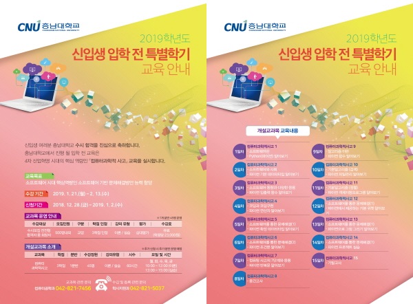 충남대학교가 예비 대학생들의 대학생활 적응을 돕고 4차 산업혁명 시대를 대비한 인재양성을 위해 특별학기를 운영한다.
