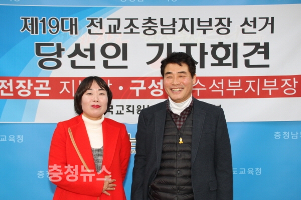 새롭게 전교조 충남지부를 이끌어 갈 제19대 지부장 전장곤, 수석부지부장 구성현은 12일 교육청에서 기자회견을 열고 "초심만 남기고 모든 것을 바꾸겠다"고 포부를 밝혔다.