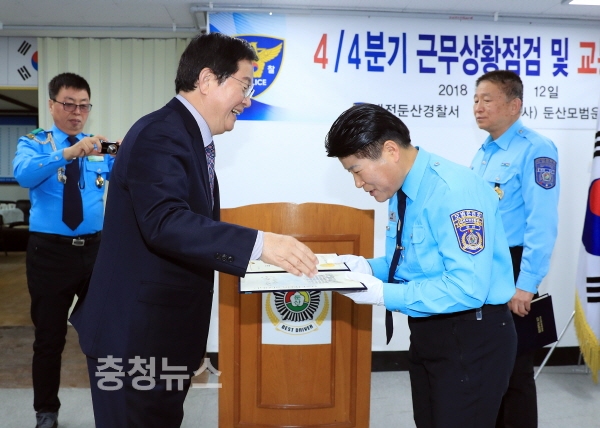 이날 행사는 박범계 국회의원, 김창관 서구의회 의장, 박종민 둔산 경찰서장 모범운전자회원 등 100여 명이 참석한 가운데 근무상황을 점검하고 교통안전교육 등을 실시했다.
