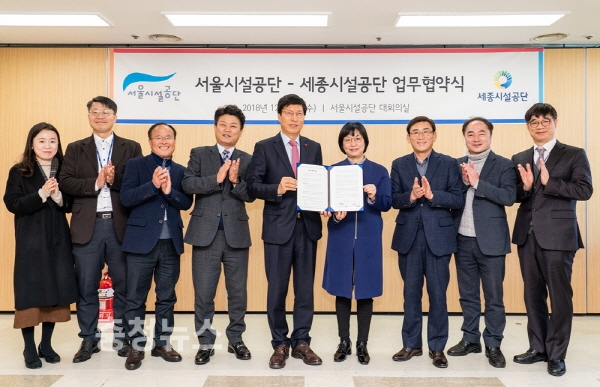 세종특별자치시시설관리공단(이사장 신인섭)은 12일 서울시설공단(이사장 이지윤)과 지역사회 발전을 위해 지방공기업 간 상호 업무협약 MOU를 체결했다.