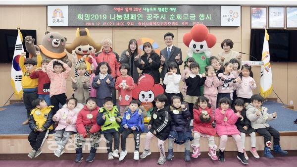 이날 행사에는 이웃을 돕기 위한 관내 어린이집과 유치원 원아들의 소중한 저금통에서부터 시민, 단체, 기업들의 자발적인 성금모금 등 따뜻한 사랑 나눔 행렬이 줄을 이어 공주시의 행복 온도가 올라가고 있다.