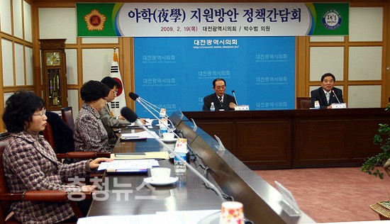 대전시의회가 야학 활성화 재정지원 확대를 위해 19일 오후 대전시의회 박수범 의원(대덕구2, 한나라당)의 주재로 '야학 지원 방안 모색을 위한 정책간담회'를 개최했다.