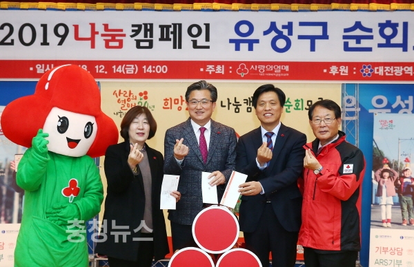 대전 유성구(구청장 정용래)는 14일 구청 대강당에서 대전사회복지공동모금회(회장 안기호)가 주관하는 ‘희망2019나눔캠페인’ 순회모금 행사를 가졌다.