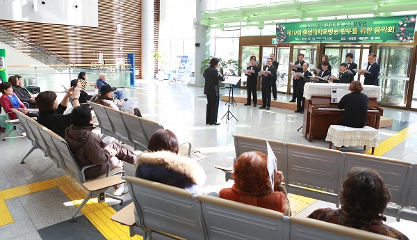 충남대교수합창단은 14일 정오 관절염·재활센터 1층 로비에서 ‘제 10회 충남대학교병원 환우를 위한 음악회’를 개최했다. 저작권자 © 충청뉴스 무단전재 및 재배포 금지 충청뉴스 다른기사 보기 기사가 마음에 드셨나요? 충청뉴스 좋은 기사 후원하기 1,000원 3,000원 5,000원 10,000원 30,000원 50,000원 직접입력 비회원 약관동의하기 ※ 소중한 후원금은 더 좋은 기사를 만드는데 쓰겠습니다.