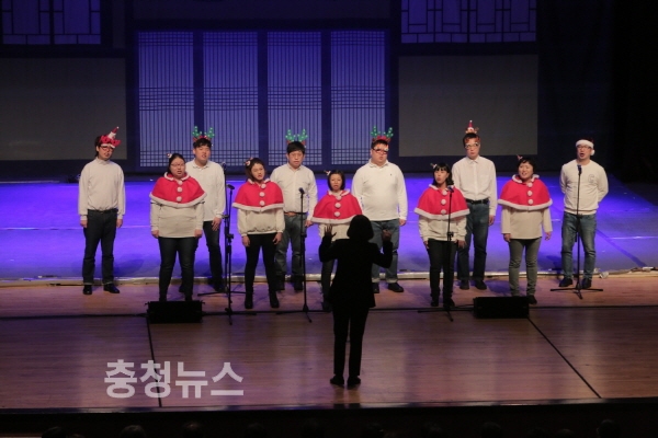또 국내 최초 음악 부문 장애인 표준사업장이자 장애인 직업합창단인 골프존파스텔합창단이 ‘썰매 타기’와 ‘크리스마스 캐럴 메들리’ 등의 흥겨운 곡을 선보이며 즐거운 연말 문화 공연을 선물했다.