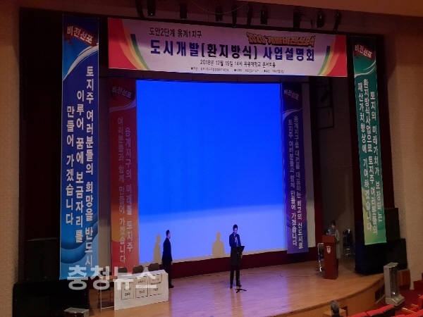 이날 행사에선 도안 2단계 공동주택용지 4개 블록과 단독주택 용지 7개 블록에 3000여 세대의 대규모 아파트 단지와 단독주택영지 500여 필지를 조성한다는 밑그림을 제시해 토지주들의 큰 호응을 얻었다.