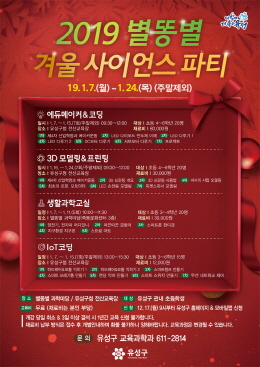 구 관계자는 “이번 겨울방학 별똥별 사이언스 파티는 4차산업혁명을 대비하는 알찬 교육과정으로 준비했다”며, “학생들이 방학을 이용해 과학에 흥미를 갖게 되는 계기가 될 수 있기를 기대한다”고 밝혔다.