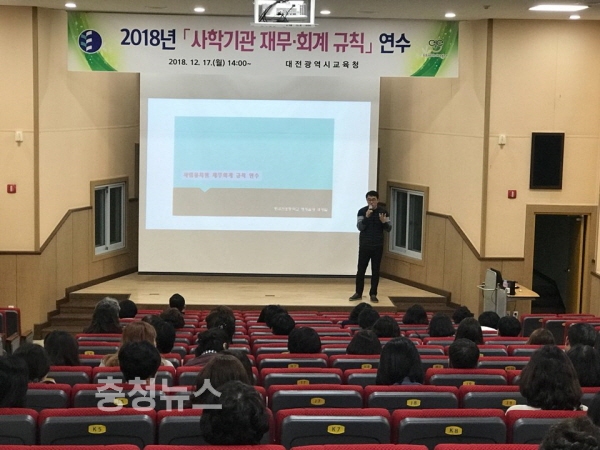 대전시교육청(교육감 설동호)은 17일 대전유아교육진흥원에서 관내 사립유치원 회계업무 담당자를 대상으로 「사학기관 재무·회계 규칙」 연수를 실시했다.
