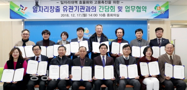 대전 동구(구청장 황인호)는 17일 구청 10층 중회의실에서 관내 15개 유관기관 대표들과 함께 일자리 대책 추진을 위한 간담회 및 업무 협약을 체결했다.