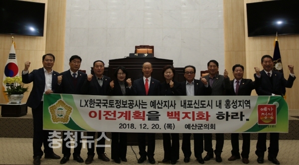 예산군의회(의장 이승구)는 20일 제246회 제2차 정례회에서 임애민 의원이 대표발의한 ‘LX한국국토정보공사 예산지사 내포신도시 내 홍성지역 이전 반대 결의안’을 채택했다.