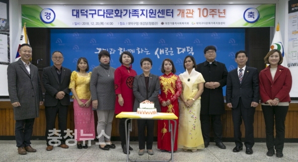 대덕구(구청장 박정현)는 20일 구청 청렴관에서 다문화가족들과 관계자 등 200여 명이 참석한 가운데 대덕구다문화가족지원센터 개관 10주년 행사를 열었다.