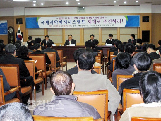 이상민의원은 25일(수) 대전시청 대회의실에서 <국제과학비지니스벨트 토론회>를 성황리에 개최하였다.