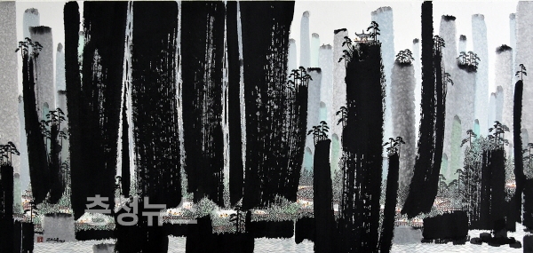 정황래 作, 산수여행 18-26(태항산수), 47.5x100.5cm, 화선지에 수묵담채, 2018