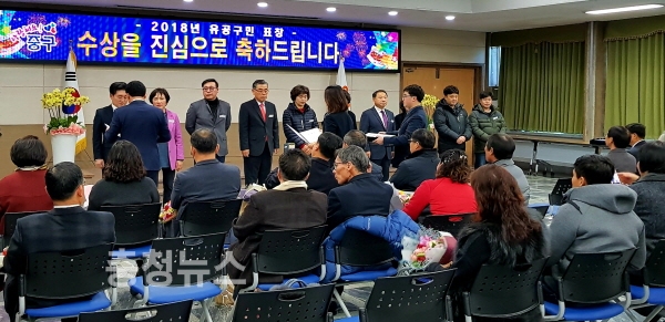 각자의 맡은 자리에서 중구 발전을 위해 노력했던 182명의 구민에게 표창장을 전달하며 그 동안의 노력에 감사를 표하고 지역에 대한 꾸준한 관심을 당부했다.