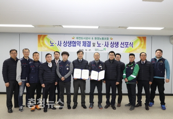 대전도시공사와 환경노동조합이 존중과 배려의 노사관계 재정립을 다짐하는 상생협약을 체결했다.