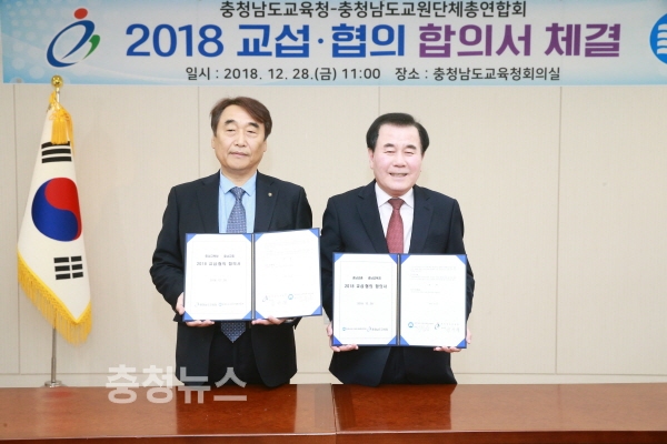충남도교육청(교육감 김지철)과 충남교원단체총연합회(회장 조붕환)는 28일 도교육청 회의실에서 교원의 전문성 신장과 지위향상을 담은 교섭·협의 합의을 체결했다.
