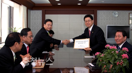 자유선진당 권선택 원내대표를 비롯한 당5역이 오늘 오전 이달곤 행정안전부 장관을 방문, ‘정부이전기관 변경고시 조속이행 촉구(안)’을 전달하고 3월 안에 변경고시를 이행할 것을 촉구했다.