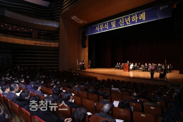 유경원 교무처장의 사회로 시작된 시무식은 이사장, 총장, 부총단의 신년사와 상명 성악 앙상블의 축하공연이 이어졌다.