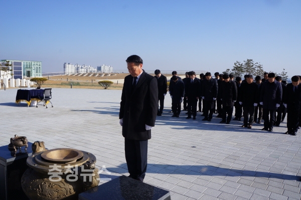 이날 참배에는 조소행 충남농협 본부장을 비롯해 조두식 NH농협은행 충남영업본부장, 류병관 농협노조 충남·세종지역위원장, 남기범 충남경제지주 부본부장, 류지민 충남지역본부 부본부장, 이석우 충남검사국장, 진문종 NH농협은행 충남영업부장, 김기동 NH농협생명 충남총국장, 최기광 NH농협손해 충남총국장 등 충남농협 간부직원 30여명이 함께 홍예공원 충혼탑을 찾아 순국선열의 뜻을 기리고 己亥年 새해 힘찬 정진을 위한 새로운 각오를 다졌다.